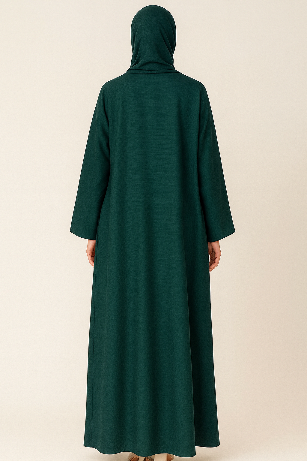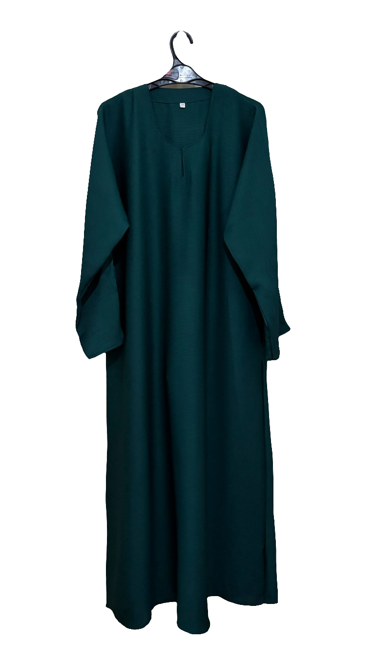 A striking emerald green abaya crafted from smooth, flowy fabric that combines elegance with everyday comfort. Its minimalist straight-cut design is timeless, making it versatile for both casual wear and special occasions. Paired with the matching hijab, this abaya offers a complete, polished look with effortless sophistication.
